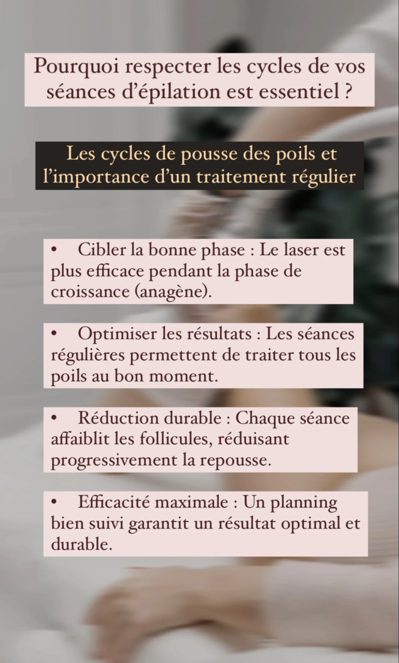 Découvrez pourquoi respecter le planning des séances est crucial pour une épilation réussie. Consultez le Centre médical Brami pour des résultats optimaux !